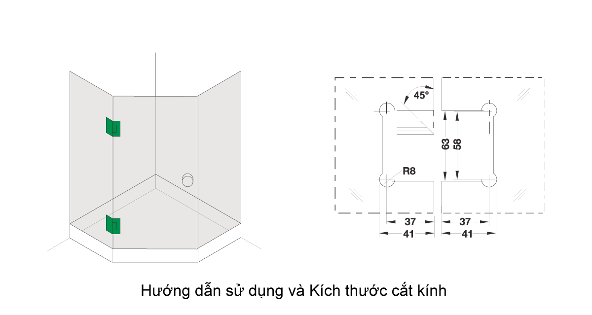 • Sử dụng thích hợp cho các loại cửa kính phòng tắm có chiều dày từ 8-12mm.