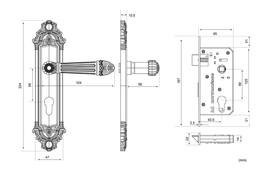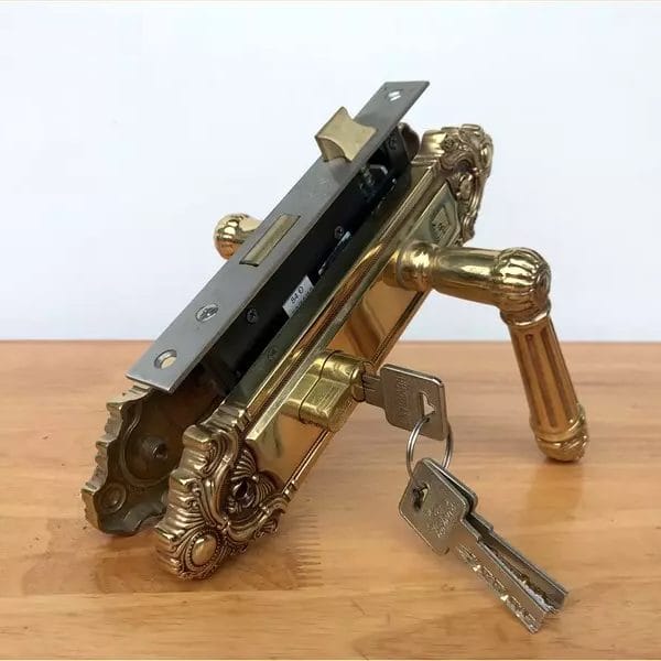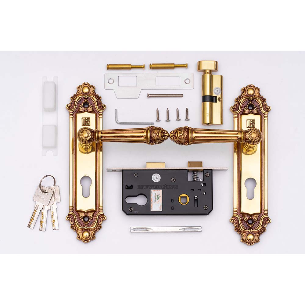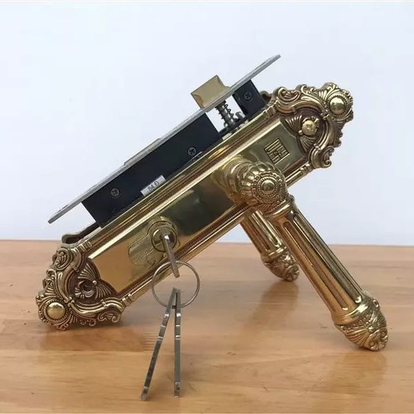 • Tay ốp khóa sản xuất bằng vật liệu đồng vàng (đồng thau).