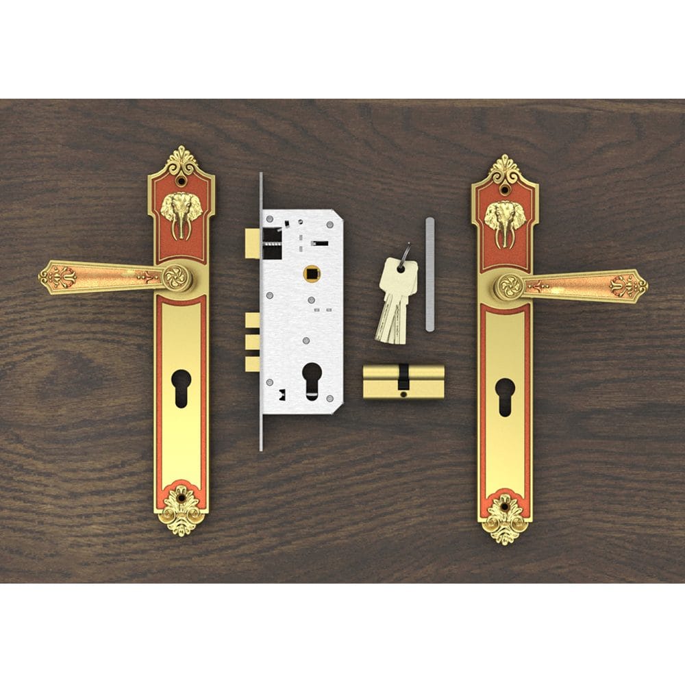 - Tay ốp khóa sản xuất bằng vật liệu đồng vàng (đồng thau).