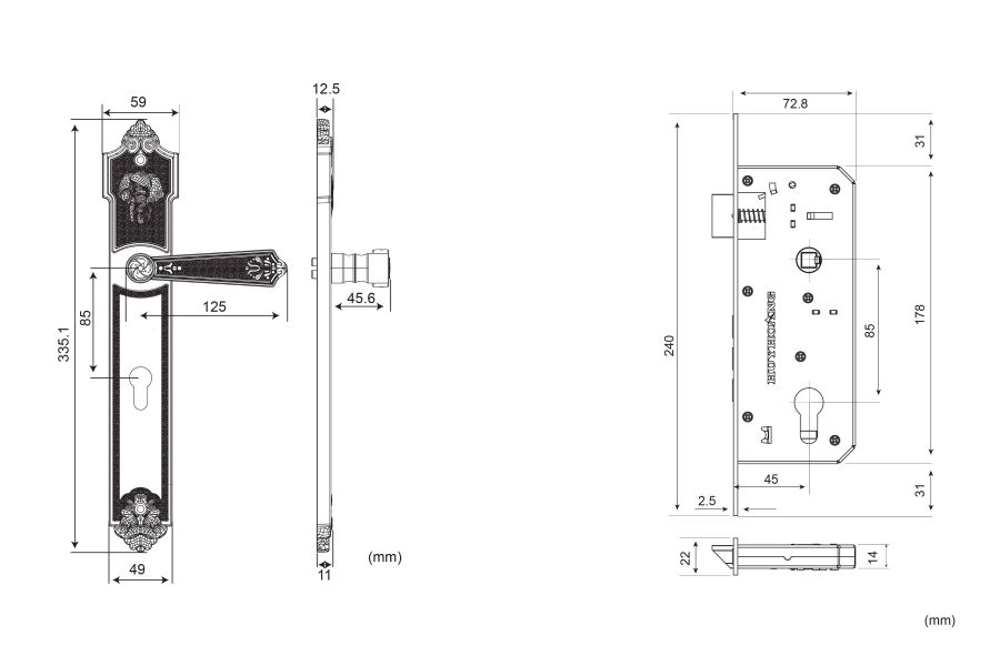 - Thân khóa được sản xuất bằng tôn thép với độ dày 1,5mm, được phủ một lớp sơn tĩnh điện.