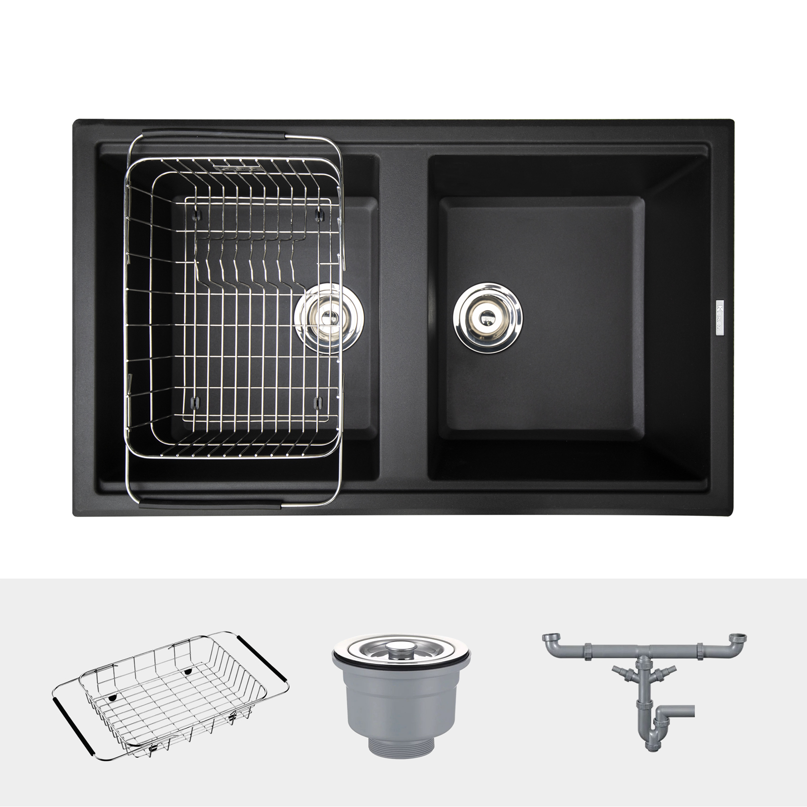 | Phụ kiện đi kèm | Bộ xả, bát chặn rác, giá úp bát inox |