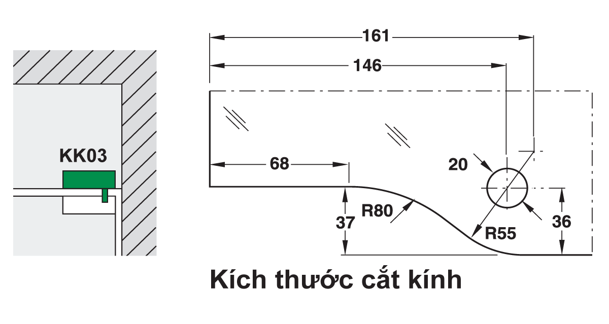 - Sản phẩm kẹp kính trên khung có trục xoay KK03V nằm trong bộ kẹp kính Huy Hoàng, sản phẩm được dùng kết hợp với kẹp kính trên KK01V.