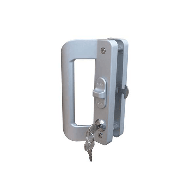 Khóa chữ D Kinlong sử dụng cho cửa đi, cửa sổ lùa nhôm Xingfa hệ 55, 93 và các loại cửa nhôm kính lùa khác.