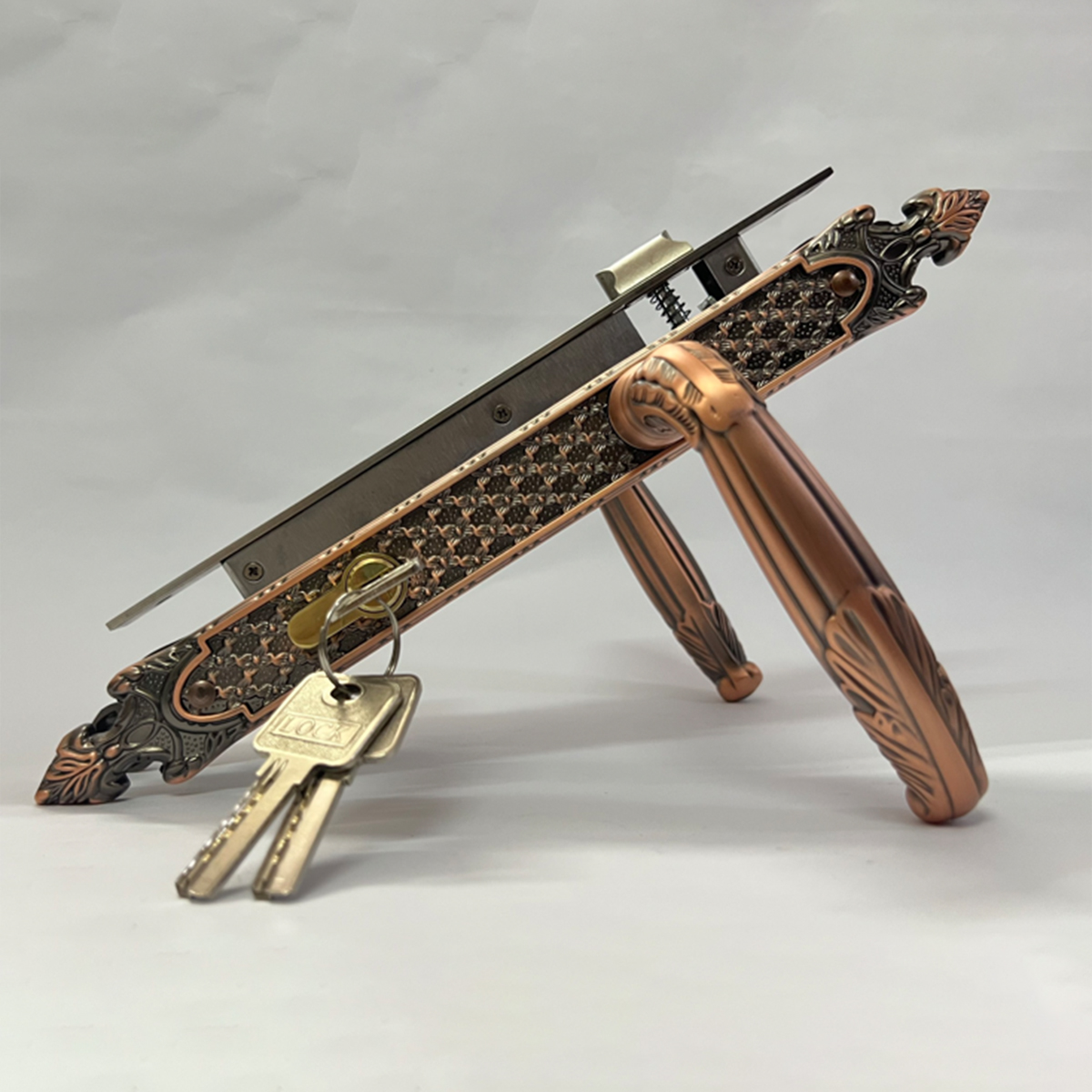 Chất liệu Tay nắm hợp kim kẽm, thân khóa inox có chốt lẫy bằng đồng thau