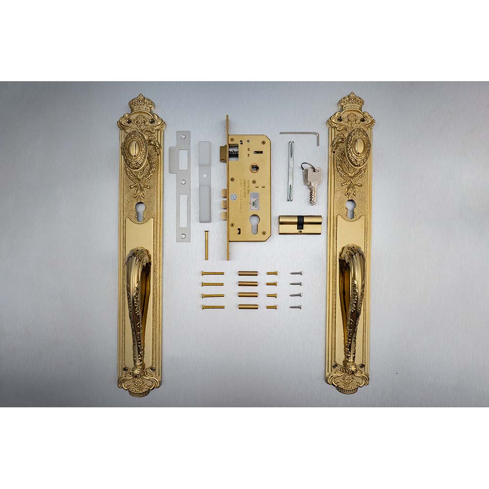 Khóa cửa gỗ đại sảnh đồng thau HC8524 PVD Gold dài 505