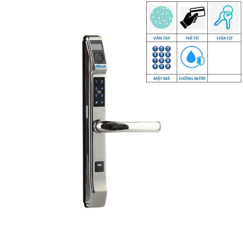 | Chức năng | Mở khóa bằng vân tay, mật mã, thẻ từ và chìa cơ |