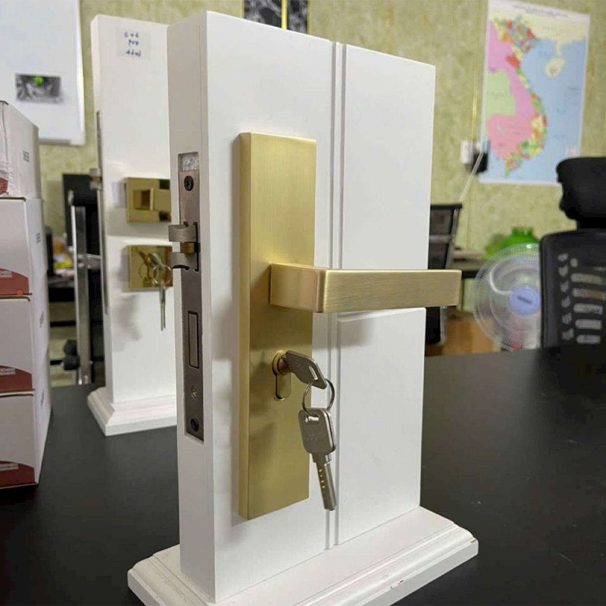 | Phương thức khóa | Sử dụng chìa khóa mặt ngoài, và núm vặn mặt trong |