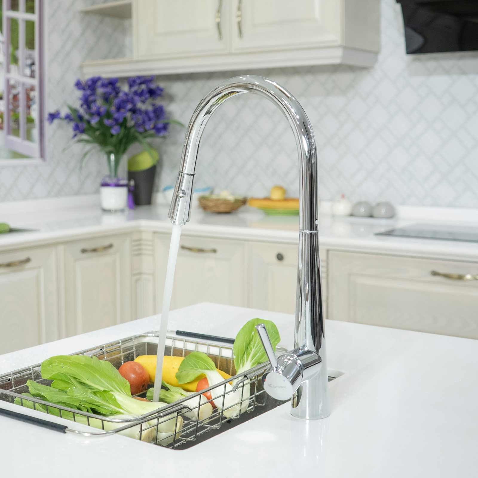 | Chức năng | Nóng lạnh + Xoay 360 độ + Rút dây + 2 chế độ xả (Dòng chảy tạo bọt + dòng chảy phun mưa) |